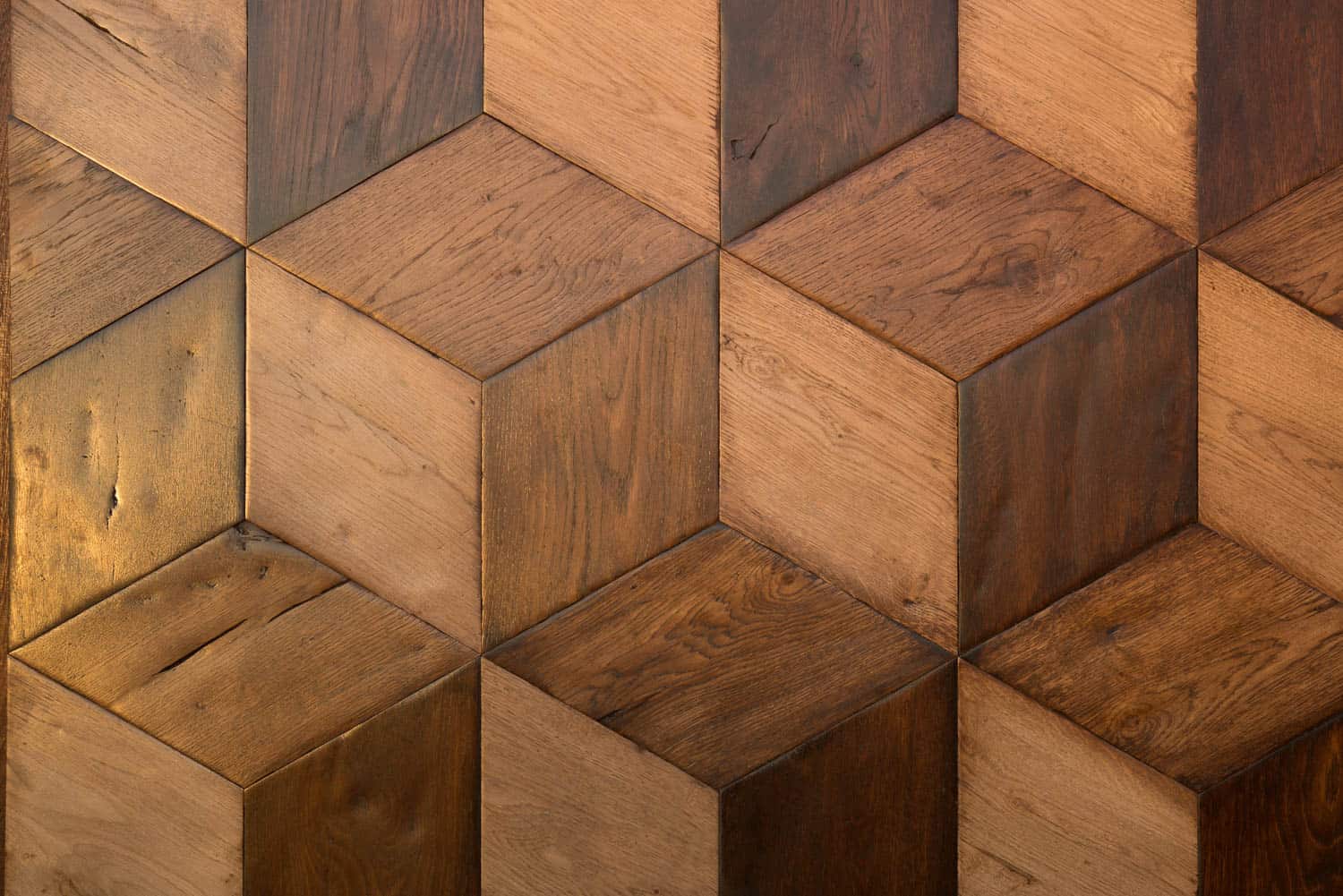 Marquetry is the application of different panels to create a pattern. This is often by using dark and light woods, but there is also an age old artisan skill in using different materials to inlay patterns including brass, pewter, mother of pearl or marble. The term is French and originates from the great cabinet makers of the 17th Century. Therefore for a truly original and bespoke wood floor contact us for further information.