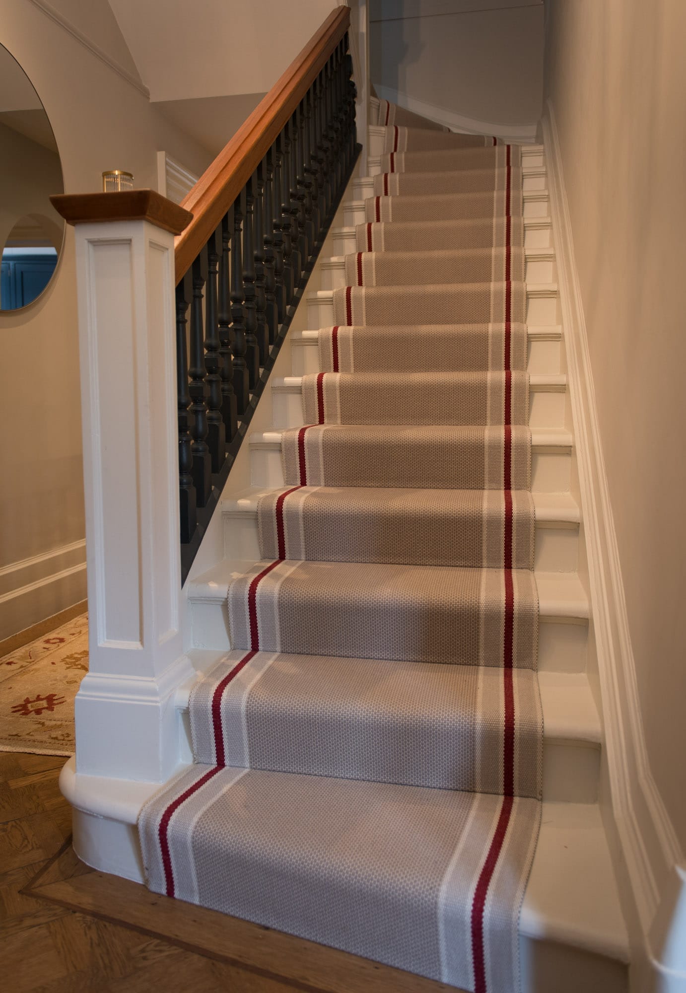 Urbane Living have an extensive range of venetian flatweave carpet runners. from Fleetwood Fox, Hartley Tissier, Roger Oates, and other leading manufacturers of runners. Our design and installation service is highly regarded in the trade and are able to give expert advice on how best to layout your carpet runners. Our carpet specialists can help design your carpet on quarter, half and full landings so that your runner is perfectly coordinated. We are able to customise most designs to allow matching runners to be  fully fitted on landings. Visit or call us at one of our London carpet showrooms