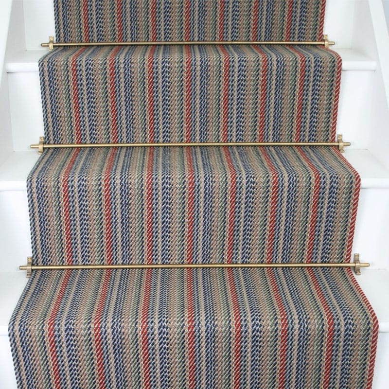Urbane Living have a range of a 100% wool flatweave runners available to view in our London showroom. The wool is spun and dyed in Yorkshire, and woven on looms in Somerset. The bespoke range has a variety of designs to choose from, and can be customised to various widths and colours. They are suitable for stairs and landings, and can be seamed to create continuity in the design around areas such as landings.