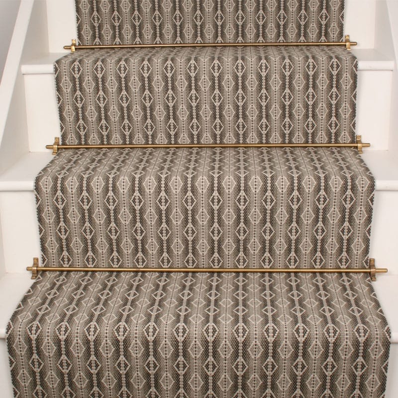 Urbane Living have a range of a 100% wool flatweave runners available to view in our London showroom. The wool is spun and dyed in Yorkshire, and woven on looms in Somerset. The bespoke range has a variety of designs to choose from, and can be customised to various widths and colours. They are suitable for stairs and landings, and can be seamed to create continuity in the design around areas such as landings.